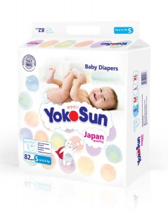 Подгузники YokoSun размер S, для новорожденных малышей весом от 3 до 6 кг. В упаковке 82 штуки.