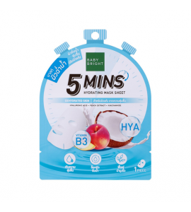 Для быстрого качественного увлажнения сухой обезвоженной и огрубевшей кожи лица тканевая маска Baby Bright 5 Mins Hydrating Mask Sheet . Эта тканевая маска обогащена витаминами В3, В5 и В8, а также экстрактом кокоса, которые обеспечивают дополнительное увлажнение и ускоряют выработку коллагена. Кроме того, он помогает укрепить вашу кожу и продлить увлажнение на 24 часа с помощью керамидов, в то время как богаты антиоксидантами экстракт персика, экстракт рисового молока и экстракт Tremella Fuciformis балансируют и защищают вашу кожу от загрязнения, поддерживая оптимальный уровень влажности и уменьшение сухости. При постоянном использовании ваша кожа станет более увлажненной, здоровой и мягкой.
