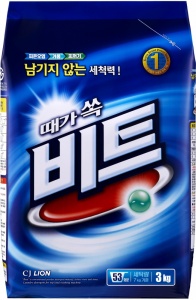 CJ Lion Стиральный порошок "Beat" для ручной и автоматической стирки, мягкая упаковка, 3 кг Концентрированный стиральный порошок. Подходит для полуавтоматических стиральный машин и ручной стирки, и для всех видов тканей, за исключением шерсти и шелка. Эффективно отстирывает въевшиеся пятна и грязь, используя малое количество порошка За счет хорошей растворимости не оставляет следов моющего средства на ткани и не требует дополнительного полоскания. Сохраняет первоначальный цвет одежды. Обладает особым обеззараживающим действием. Храните в упаковке производителя в недоступных для детей местах, а также вдали от отопительных приборов и прямых солнечных лучей. Состав: ПАВ (высшие спирты неионные), жирные кислоты (анионы), алкилбензол с нормальной неразветвленной цепью (анион), альфа олефин, кислородный отбеливатель, цеолит, фермент, флуоресцентный отбеливатель, ароматизатор.