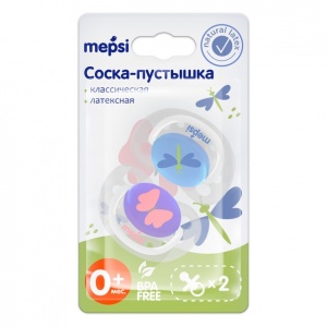 0342 Соска-пустышка латексная MEPSI классическая, 0+,2шт